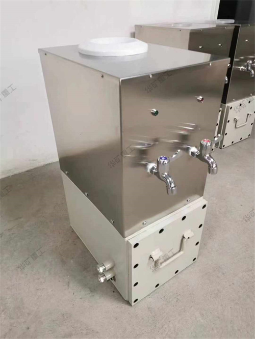 礦用防爆飲水機為礦用隔爆兼本安型,防爆標志為Exd[ib]I。使用在有甲烷氣體混合物和煤塵爆炸危險的煤礦井下??赏瑫r提供85℃的熱水和常溫水,可供井下工作人員飲用熱水。本加熱器能自動控溫,采用內置不銹鋼電加熱管加熱,具有壽命長熱效高,升溫快,噪聲低,具有安全隔爆,省電等特點。