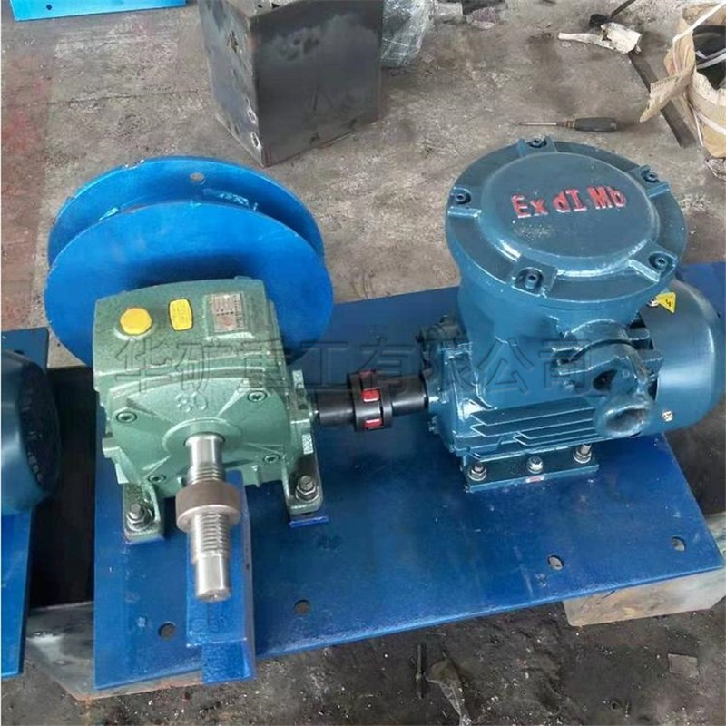 收放絞車包括:防爆電機、減速機、滾筒、提升鋼絲繩,由防爆電機通過減速機帶動滾筒進行正反轉,經提升鋼絲繩帶動擋車欄提升、落網。