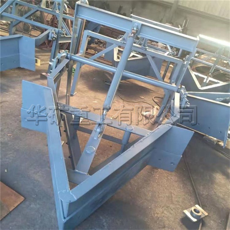 犁式卸料器是安裝在膠帶輸送機(jī)的中間架上,能將膠帶輸送的物料均勻、連續(xù)卸入料斗或需要場(chǎng)所的皮帶輸料輔機(jī)。本卸料器比老式卸料器增加了可變槽角、副犁刀等,并改用電液推桿動(dòng)力源。克服了老式卸料器犁料不盡、刮皮帶以及電動(dòng)推桿過載能力差,常燒毀電機(jī),頂彎絲杠,機(jī)械易損壞等缺點(diǎn)。電液動(dòng)犁式卸料器廣泛用于礦山、冶金、電場(chǎng)、煤場(chǎng)、集運(yùn)站、港口碼頭等輸送機(jī)的分段卸料。