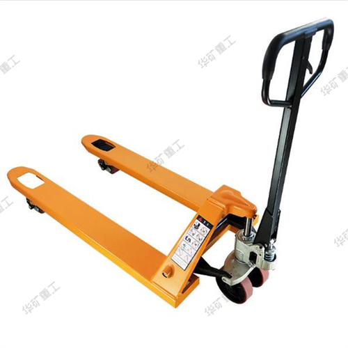在使用時,將貨叉插入托盤孔內(nèi),由人力驅(qū)動液壓系統(tǒng)來實(shí)現(xiàn)托盤(貨物)的起升和下降,并由人力拉動完成搬運(yùn)作業(yè),是托盤運(yùn)輸工具中使用簡便、有效、常見的裝卸搬運(yùn)工具。