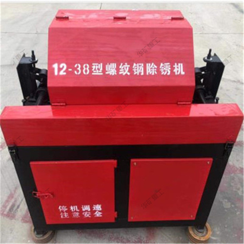 螺紋鋼筋除銹機可針對16-32的螺紋鋼進行除銹拋光,一次成型。本機采用雙電機設計,雙轉向。轉向一正一反完全解決了鋼筋在除銹中的預應力,從而使工作人員更安全更輕松的完成除銹工作,本機只需一人便可輕松操作每分鐘在除銹50米以上。